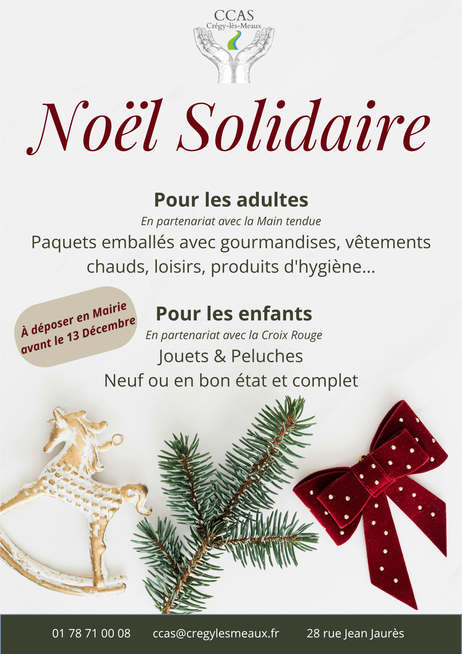>> Vous pouvez déposer les paquets en Mairie jusqu’au 14 décembre, ils seront remis aux associations » la Croix Rouge » et « la Main Tendue » de Meaux qui feront la distribution.