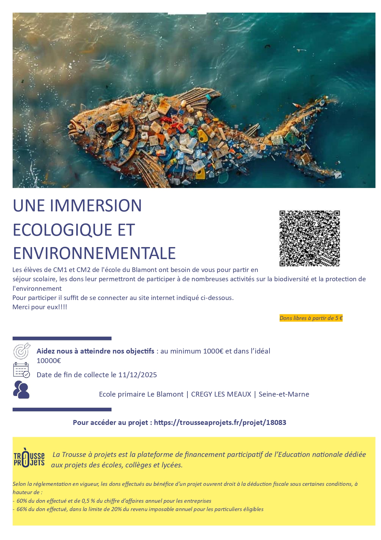 Une première depuis un moment ! L’école a posté l’appel aux dons sur le site « trousse à projets » en lien avec le nouveau label E3D. Ce label récompense l’école pour son engagement dans le développement durable.