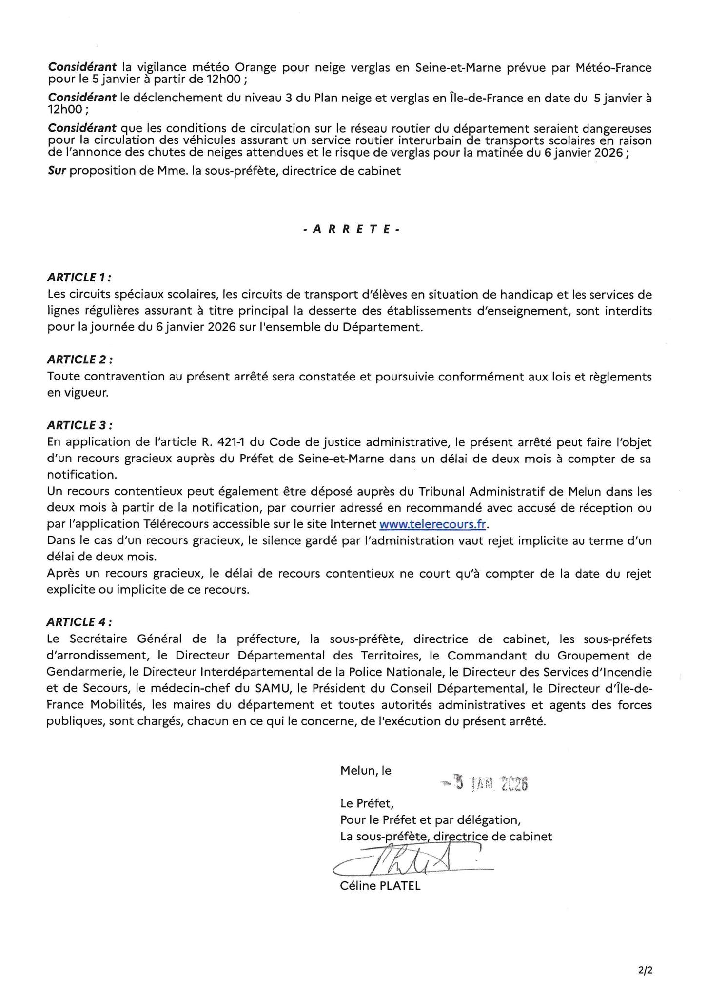 En raison de l’épisode neigeux et des conditions de circulation, les circuits spéciaux scolaires, les circuits de transport d’élèves en situation de handicap et les services de lignes régulières assurant à titre principal la desserte des établissements d’enseignement sont interdits pour la journée du mardi 6 janvier 2026 sur l’ensemble du département.