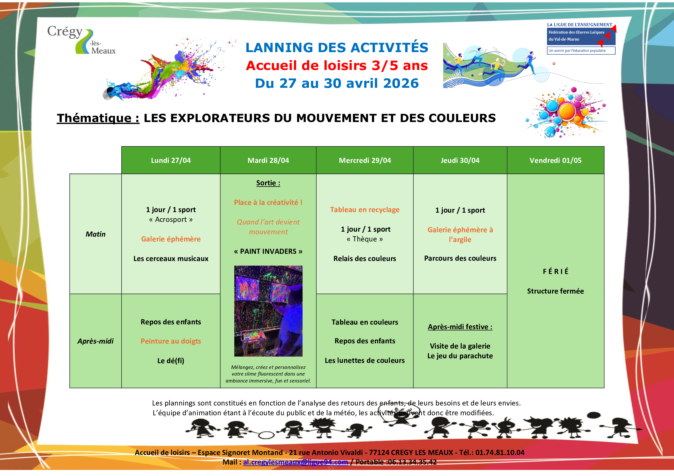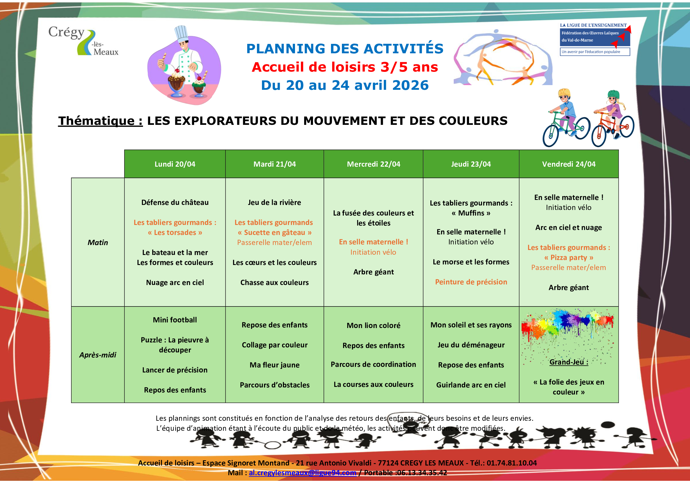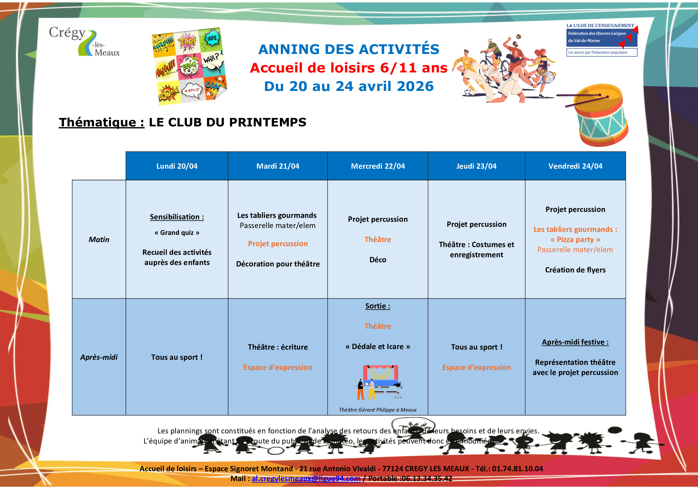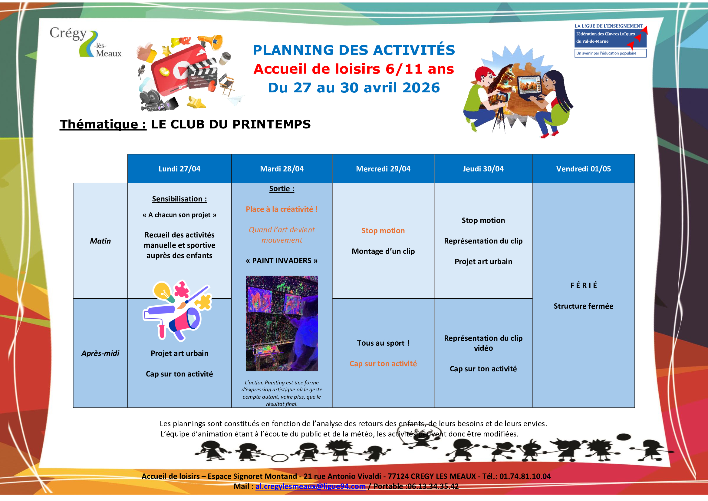 Les équipes d’animation sont prêtes à recevoir vos enfants pendant les vacances d’avril, avec un large programme d’activités thématiques au programme.